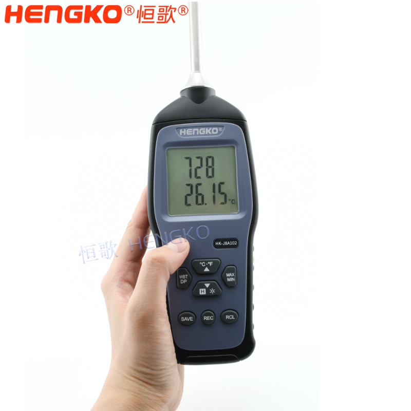 恒歌手持露點儀采用9V電池供電,采用外接高精度探頭,具有測量濕度、溫度、露點溫度、濕球溫度功能,可輕松應對各種場合下對溫濕度精確測量的需求。本產品是實驗室、 工業、工程等溫濕度測量的理想選擇。