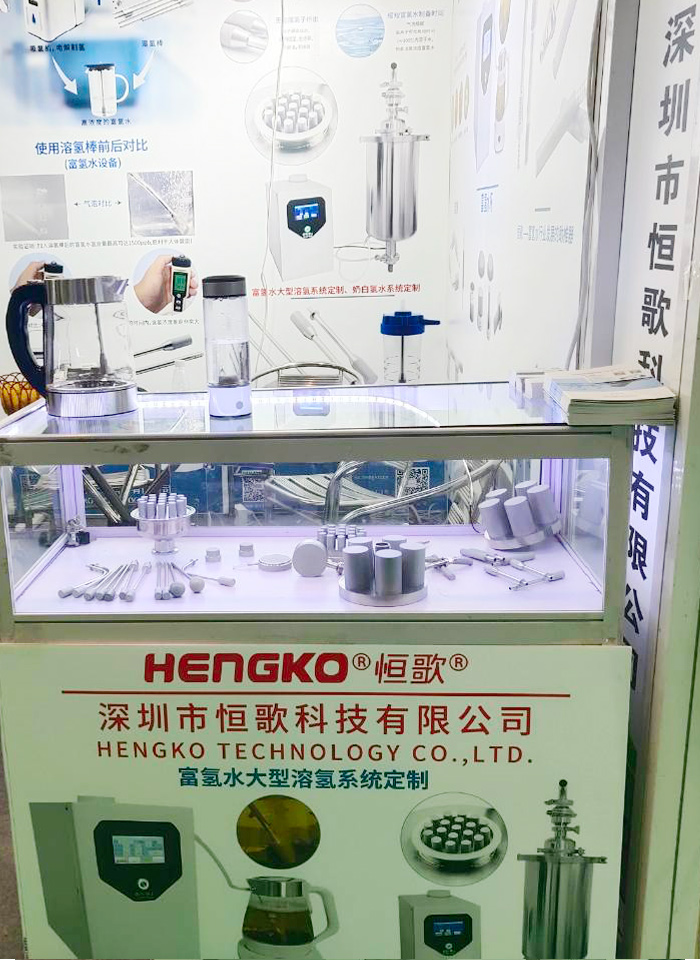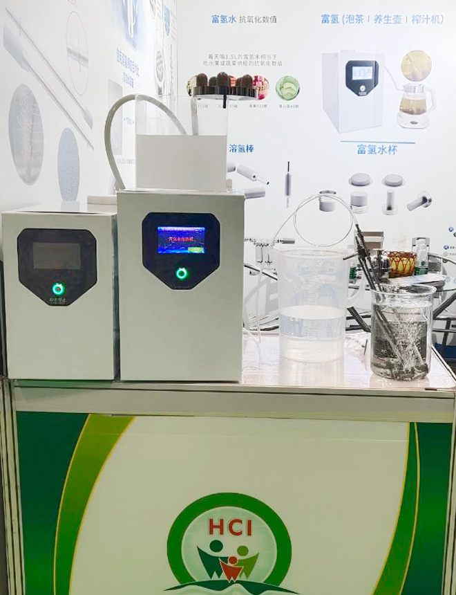 ??????? 此次展會上,恒歌還展出多款富氫水氣泡發生裝置,產品操作簡單只需將溶氫棒或氣泡發生裝置與硅膠軟管相連,吸氫機產生的氫氣通過軟管被溶氫棒分解成納米小氣泡,均勻的分布水中,加速溶氫效率和提高氫含量效果顯著。