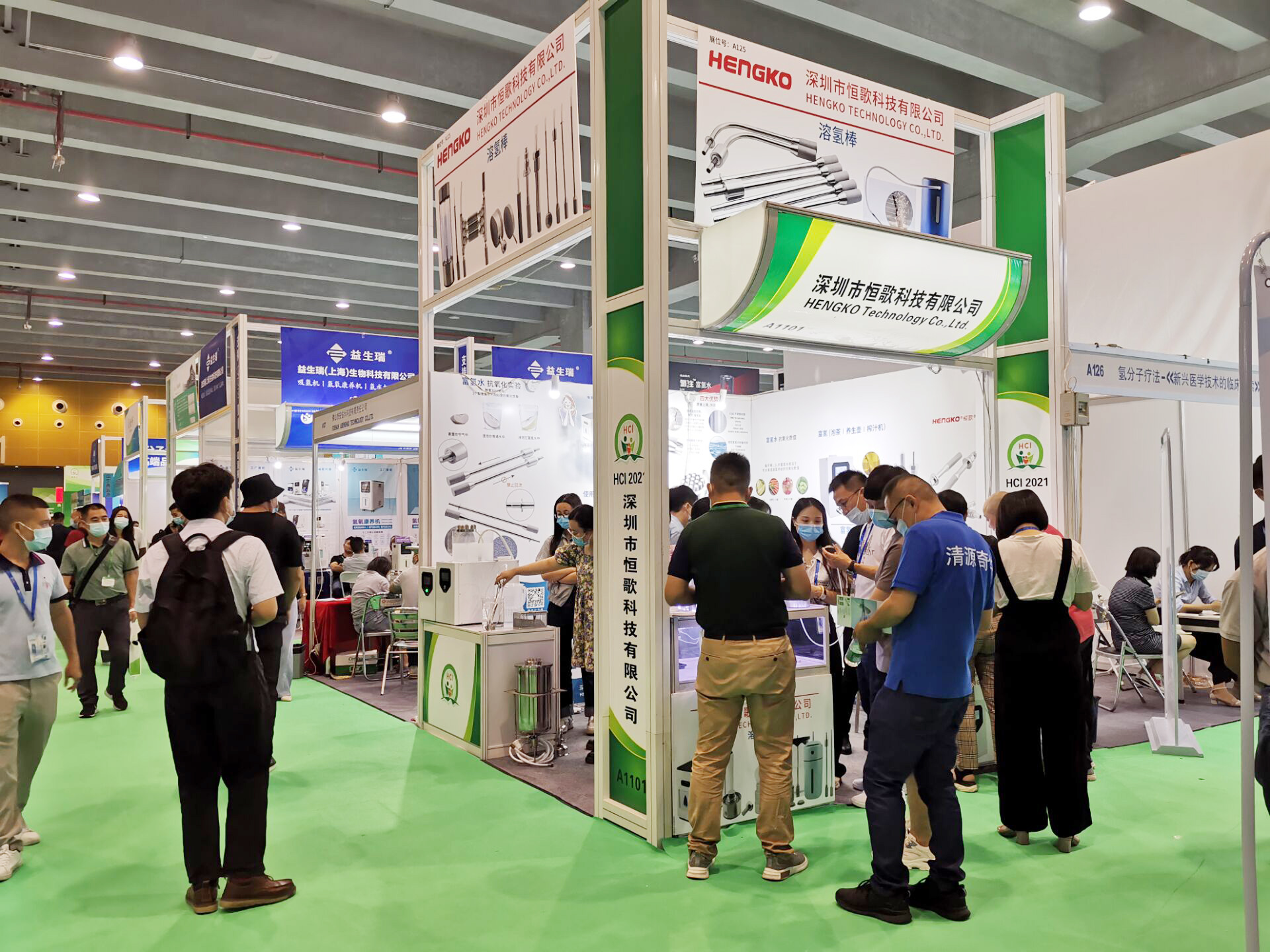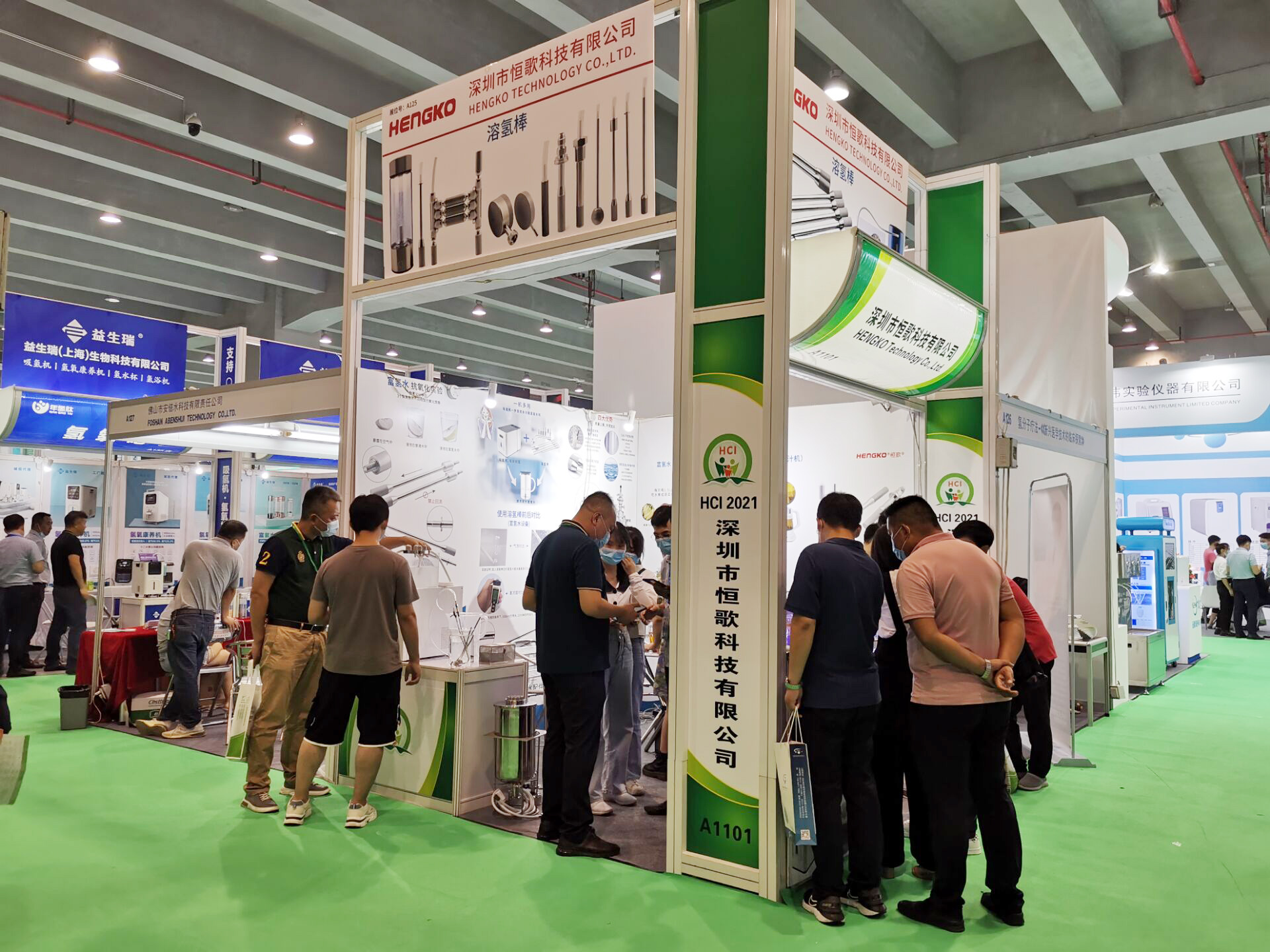 ???????? 第十二屆廣州國際健康保健產業博覽會(HCI 2021)【簡稱:康博會】于2021年9月10日 – 9月12日在廣交會琶洲展館圓滿落幕。此次展會展覽產品涵蓋保健(功能)食品、氫產品、理療產品、睡眠功能性家居用品、艾灸、綠色食品、醫療器械、包裝設備以及與健康有關其他全部產品等。恒歌作為富氫水行業的助推器,在此次展會上展出多款富氫水納米溶氫棒,富氫水納米氣泡發生裝置,富氫水設備配件等。