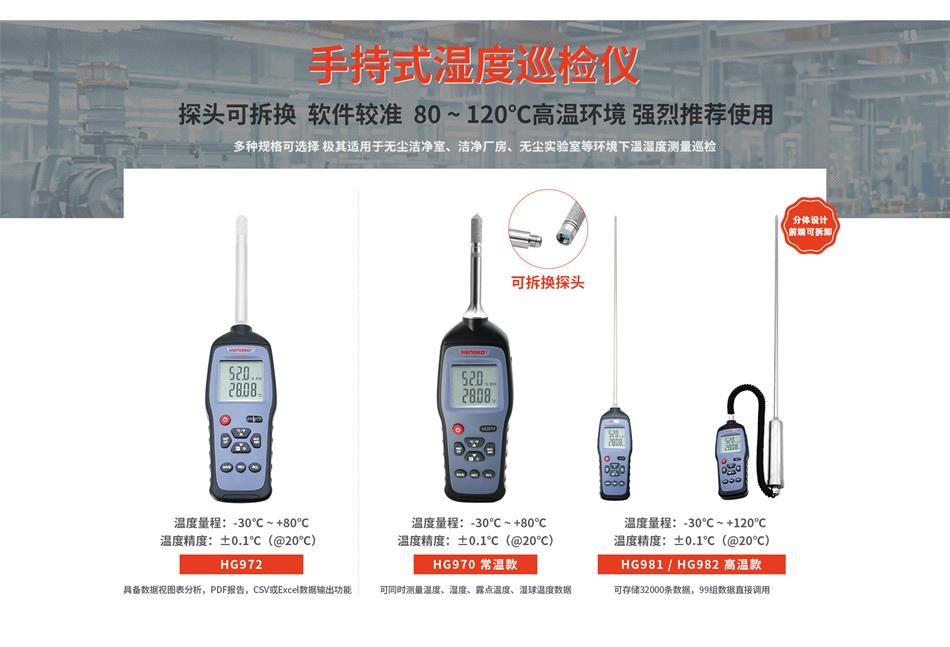 HG982手持分體式高溫溫濕度巡檢儀是一款專為高溫工業(yè)環(huán)境需求設(shè)計(jì)的高精度測量儀器。在高溫環(huán)境80~120°C下測量表現(xiàn)出眾。在濕度范圍0-100%RH,且露點(diǎn)溫度-30~...